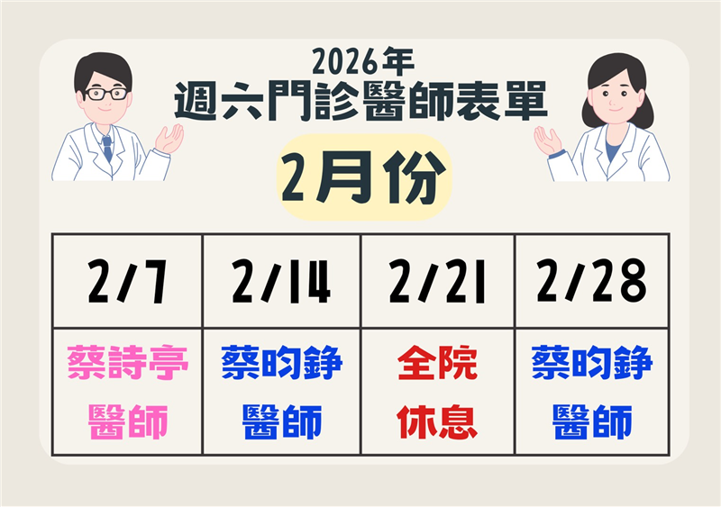 115年2月份門診表出爐囉!